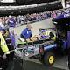 This is the shocking moment a Baltimore Ravens cheerleader was stretchered off the field after apparently landing on her neck during a stunt. The teenager, who has not been named, was reportedly thrown into the air during a routine at the Ravens' game ...
